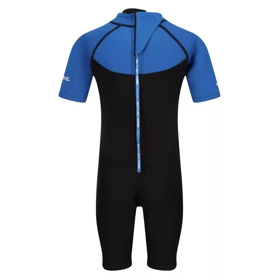 Kids' Shorty Nautical от Regatta е неопренов костюм за деца. Форма съобразена с детските габарити, материята обгръща тялото, като осигурява топлина и в същото време има ултравиолетова защита.