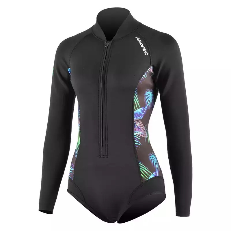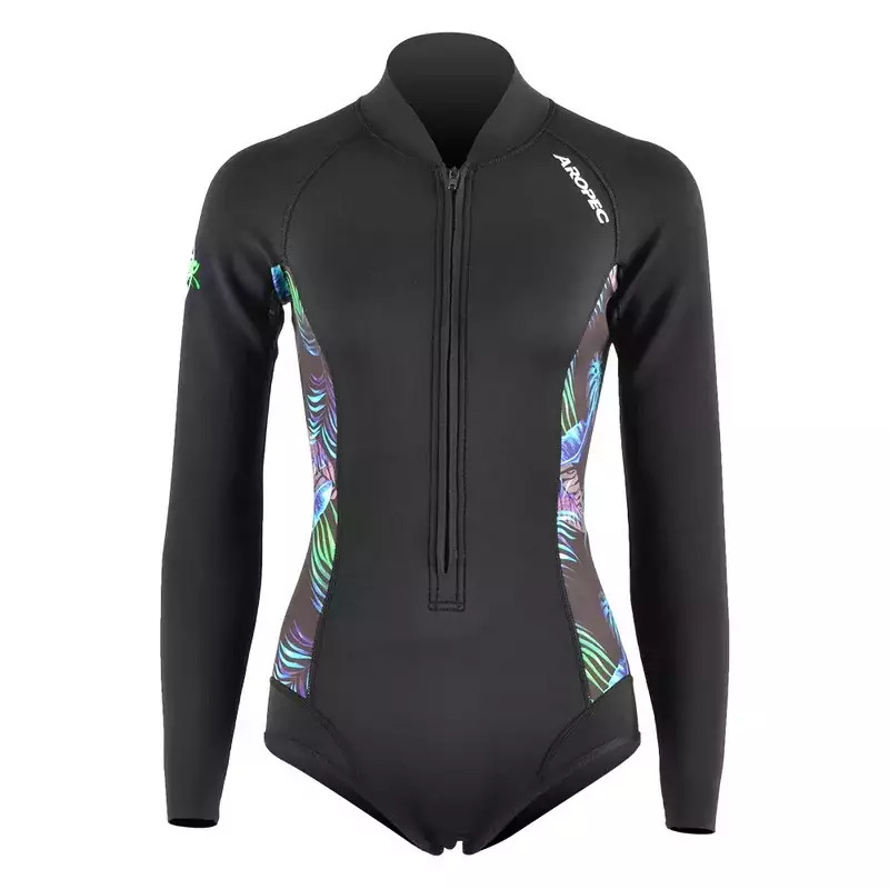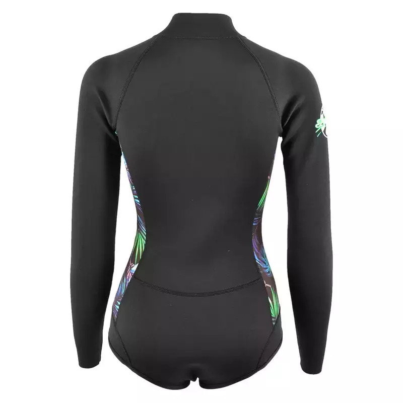 Wetsuit, Woman. 2mm Super-Stretch Smooth Skin Neoprene with collar to keep thermal. Front zipper design for easy to wear.