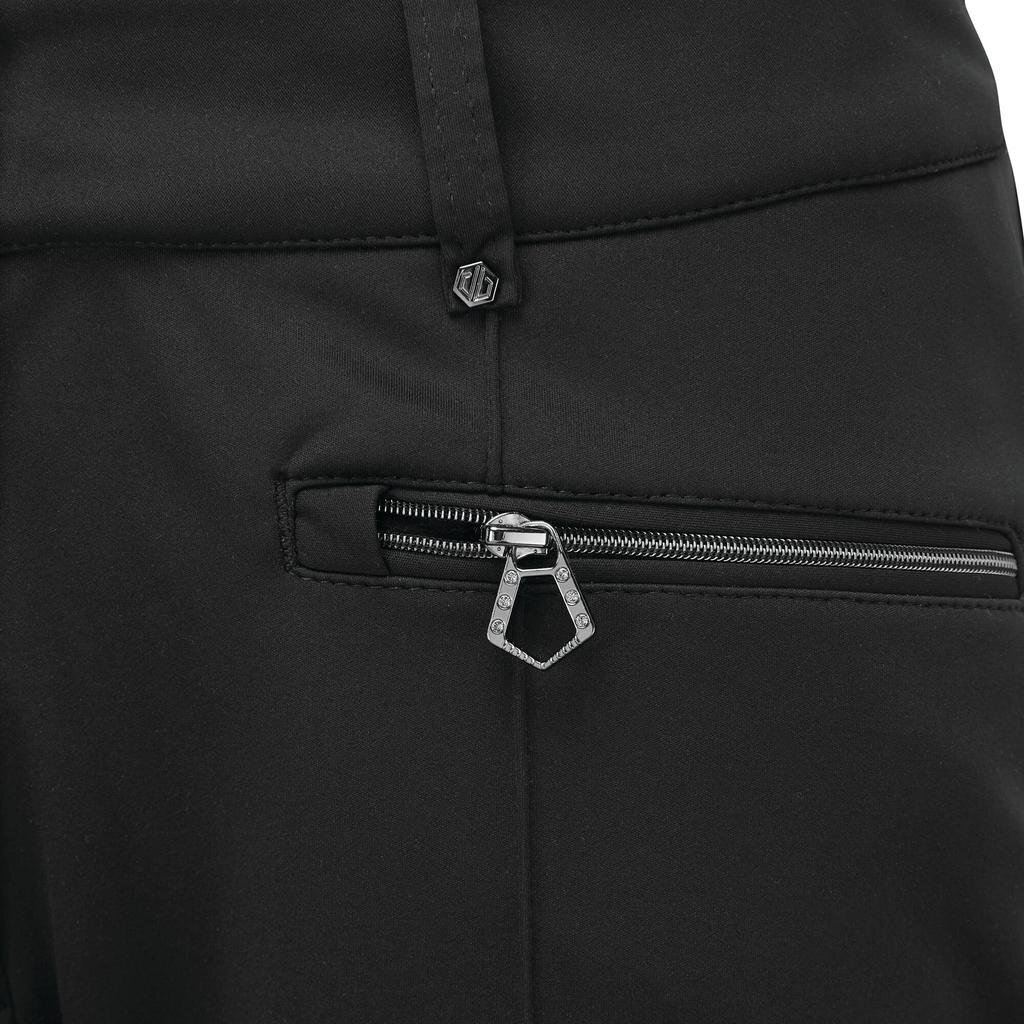 • Zip gusset at hem. Reinforced self fabric overlay at inner ankle
